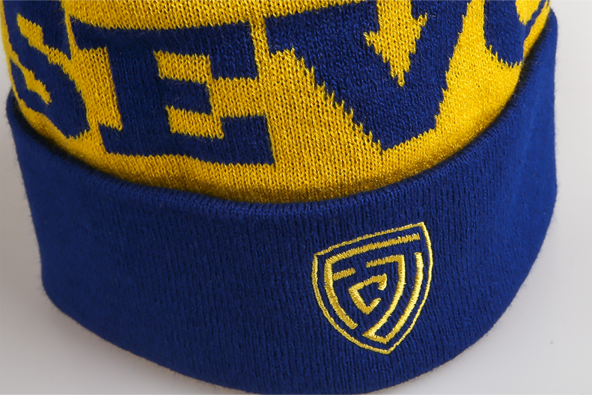 Zimní čepice s bambulí - modrožlutá - dospělí